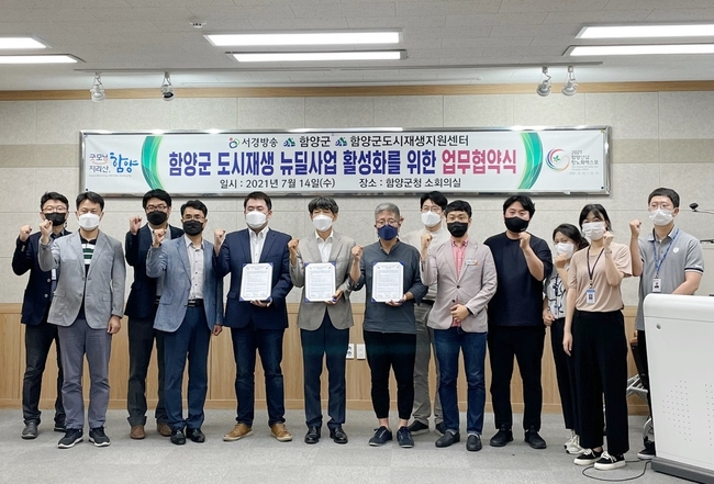 [시사뉴스 정윤철 기자] 함양군(군수 서춘수)은 14일 오전 함양군도시재생지원센터(센터장 손재현), 서경방송(대표이사 윤철지)과 도시재생 뉴딜사업 활성화와 지속가능한 사업 추진을 위해 업무협약을 체결했다.