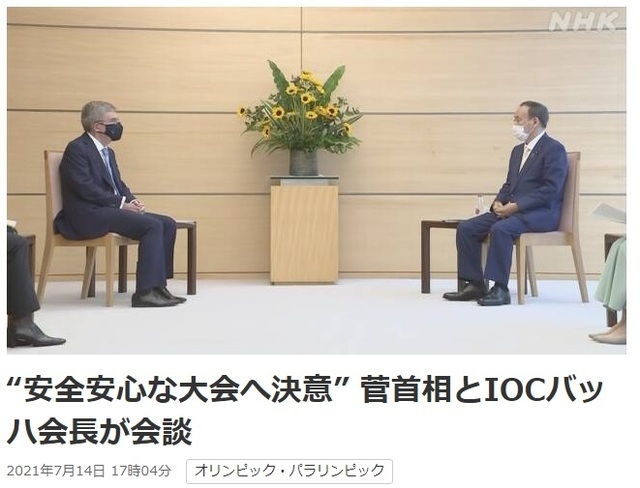16일 아사히신문은 일본을 방문 중인 바흐 위원장이 지난 14일 도쿄 총리관저에서 스가 요시히데(菅義偉) 총리와의 회담에서 "감염 상황이 개선되면 유관중 (개최)도 검토해달라"고 요청했다고 보도했다.