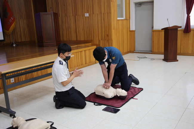 이날 교육은 휴가철을 맞아 피서객의 안전 및 치안을 위하여 여름파출소(양산시 원동면 배내골 소재)를 운영하기에 앞서 응급환자 발생 시 골든타임 확보 및 실질적인 응급처치를 위한 심폐소생술 및 안전교육을 실시했다.