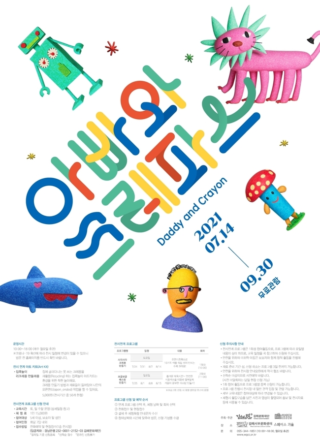 (재)김해문화재단 김해서부문화센터 스페이스 가율은 여름방학을 맞아 2021 여름 특별전 '아빠와 크레파스'를 14일부터 9월 30일까지 개최한다.