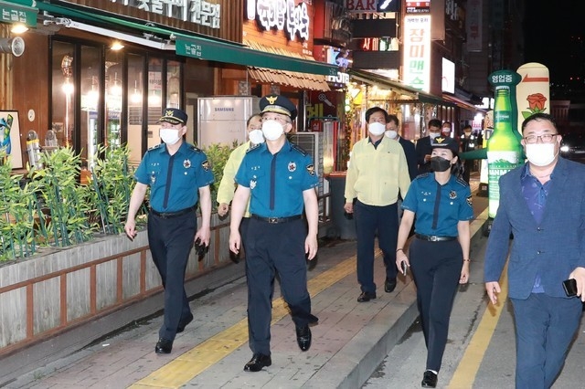 [시사뉴스 홍경의 기자] 경기남부경찰청 김원준 청장은 17일 오후 경기 수원시 인계동 소재 유흥시설 및 식당가 밀집지역에서 코로나19 방역상황을 점검했다.