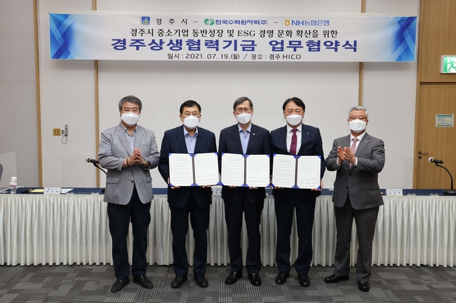 [시사뉴스 정윤철 기자] 한국수력원자력(사장 정재훈, 이하 한수원)이 19일 경주시, NH농협은행과 업무 협약을 맺고, 20일부터 지역 중소기업을 대상으로 ‘경주상생협력기금’ 저리 자금지원(대출)을 시행한다.