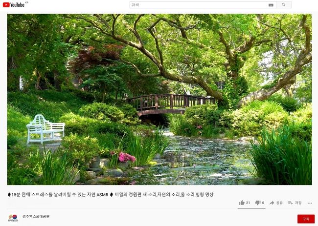 특히 경주엑스포대공원은 곳곳에 위치한 공원 내 힐링 포인트를 고화질 영상으로 담은 자연 ASMR(Autonomous Sensory Meridian Response ‧ 자율감각 쾌락반응)영상을 시리즈로 기획해 온라인을 통해 공개하면서 ‘랜선 힐링’을 제공, 온 ‧ 오프라인을 아우르는 힐링의 대명사로 자리잡고 있다.
