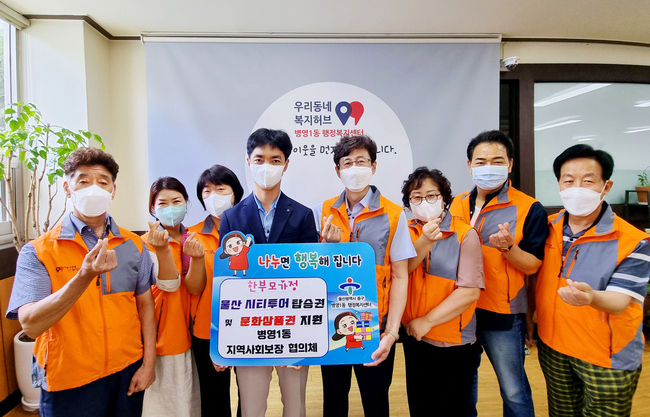 병영1동 지역사회보장협의체는 여름방학을 맞아 저소득 한부모 가정 30세대에 울산시티투어 탑승 이용권을 전달해 자녀와 함께 울산의 명소를 관광할 수 있도록 하고, 미취학 및 초등학생 자녀에게는 1만 원 상당의 문화상품권을 전달해 책 구입, 영화관람 등 문화 활동을 지원했다.