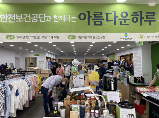 이번 행사는 23일 10시 30분부터 18시까지 아름다운가게 울산신정점(남구 돋질로 87)에서 개최되며, 안전보건공단 임직원들이 기증한 의류, 주방·생활 잡화, 가전제품 등 약 400점을 판매한다.