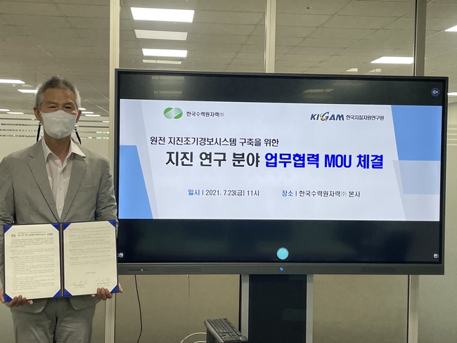 KIGAM은 지질·지진분야 전문 연구기관으로, 이번 기술협력을 통해 한수원은 원자력발전소의 지진관측자료를 KIGAM과 실시간으로 공유하고, KIGAM은 자체 개발한 지진조기경보시스템 기술을 한수원에 무상으로 이전하기로 했다.