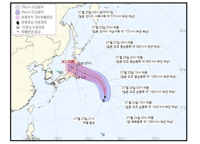 예측 경로를 보면 우리나라에 영향을 미칠 가능성은 크지 않다. 다만 도쿄올림픽이 한창인 일본 도쿄를 관통할 것으로 보인다.