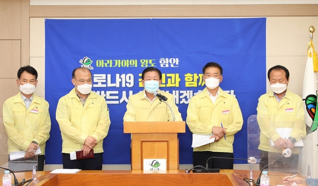 [시사뉴스 정윤철 기자] 조근제 함안군수는 26일 군청 2층 회의실에서 최근 군내 코로나19 확산세와 관련, 코로나19 확산 방지를 위한 대 군민 담화문을 발표했다.