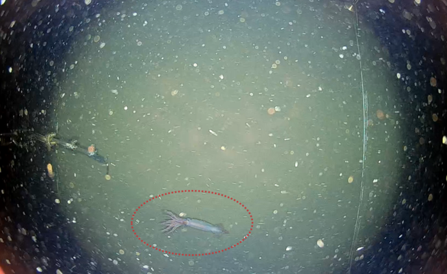 국립수산과학원 독도수산연구센터는 지난 6월 동해 심해수산자원조사에서 ‘심해 관찰용 수중카메라’를 이용해 수심 1,000m (수온 0℃)에서 심해오징어 등 다양한 생물들을 영상에 담는 데 성공했다.