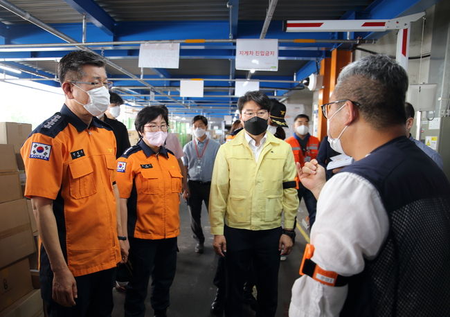신열우 소방청장은 사무실에 들러 관계자들과 함께 현황을 청취한 뒤 물류창고 전체를 둘러보며 주요 소방시설을 확인하고 화재위험요인을 확인·지도하였다.