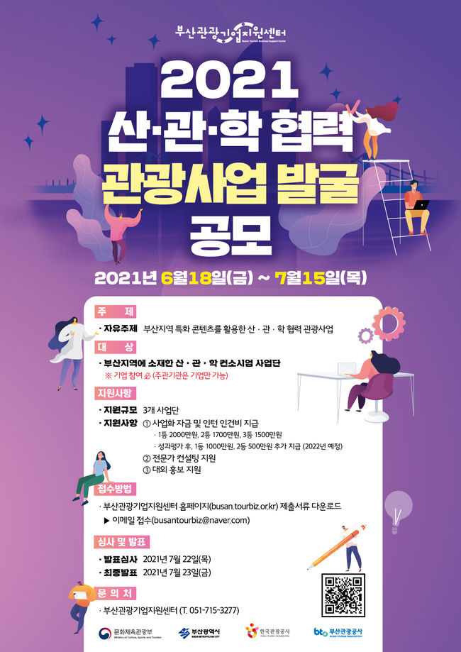 [시사뉴스 정윤철 기자] 부산광역시와 부산관광공사가 문화체육관광부·한국관광공사의 지원을 받아 진행한 ‘2021 산․관․학 협력 관광사업 발굴 공모’결과, 총 3개의 혁신적인 산․관․학 컨소시엄 사업단(부산 소재)이 최종 선정되었다고 발표했다.