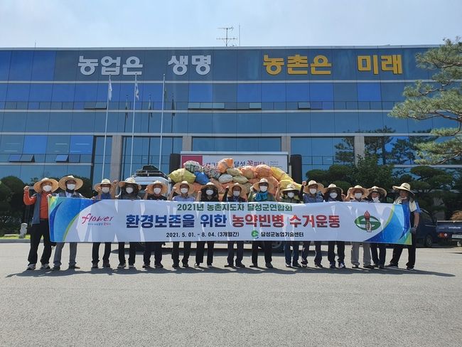 달성군 9개 읍면 400여명의 회원들은 지난 5월부터 모아둔 영농폐기물과 들녘에 버려진 농약빈병 3.5톤 차 1대 분량을 수거하는 등 자연환경 보존에 솔선수범하고 있다.