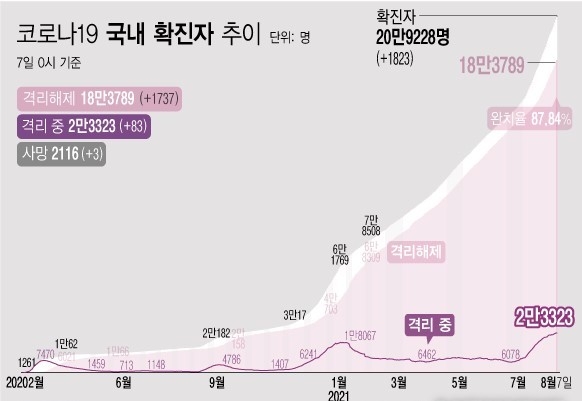 입원환자 중 이날 95명이 퇴원해 누적 격리해제자는 총 7783명이며, 누적 사망자는 128명이다. 자가격리 인원은 총 1만976명(접촉자 6374명, 해외입국자 4602명)이다.