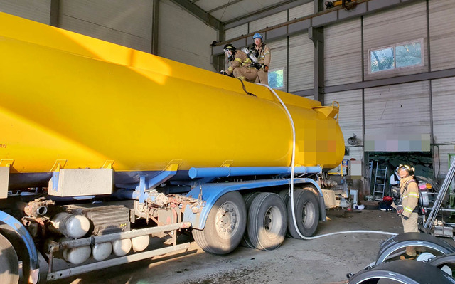 소방당국은 A씨 등이 탱크로리 차량을 용접하면서 튄 불꽃이 유증기와 만나 폭발한 것으로 추정하고 있다.