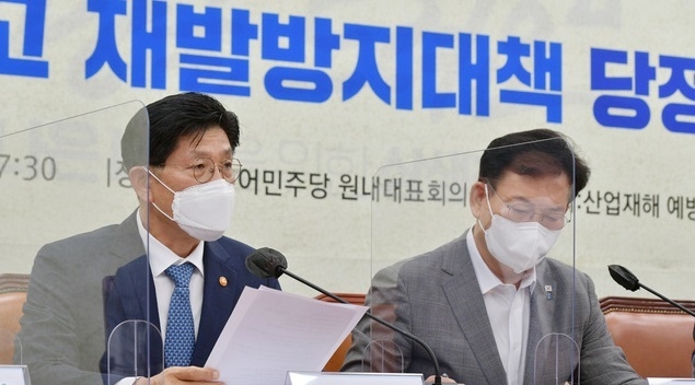 당 산재예방 태스크포스(TF) 위원장을 맡고 있는 김영배 최고위원은 "고질적 불법 하도급으로 인한 부실 시공과 현장 감독의 태만이 있었다"며 "후진국형 사고로 국민이 목숨을 잃는 일은 더 이상 반복돼선 안 된다"고 강조했다.