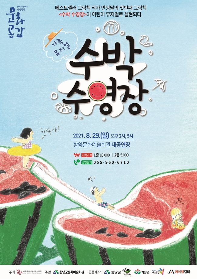 [시사뉴스 정윤철 기자] 함양군은 오는 29일 오후 2시, 5시 2회에 걸쳐 여름방학 끝자락에 온가족과 함께하는 ‘수박 수영장’ 창작뮤지컬을 함양군문화예술회관에서 선보인다.
