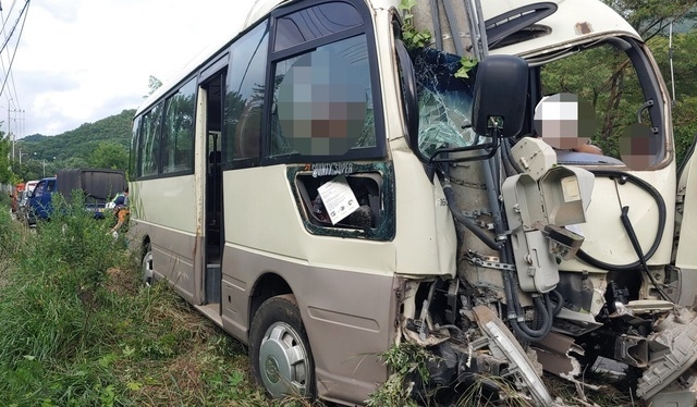 [시사뉴스 홍경의 기자] 강원도 화천에서 육군 제7보병사단(칠성부대) 소속 25인승 군용버스가 전봇대를 들이받았다.