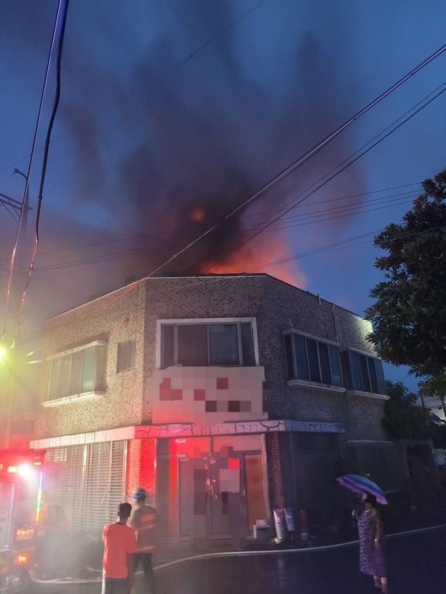 2층에서 잠을 자던 신고자는 옥상에서 유리가 깨지는 소리를 듣고 화재를 인지해 신고한 뒤 나머지 거주자와 함께 자력으로 대피한 것으로 전해졌다.