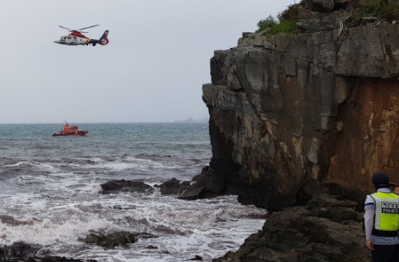 오후 2시45분 공중에서 수색하던 해경 헬기에서 남성을 발견, 동해해양특수구조대원이 바다에 들어가 남성을 구조해 병원으로 옮겼지만 의식을 찾지 못했다.