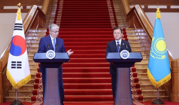 이날 양자회담에 앞서 청와대 본관에서 열린 '한-카자흐 정상회담'에서는 한-카자흐 수자원 관리 분야 협력에 관한 양해각서가 체결됐다.