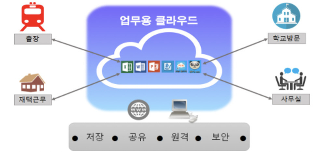 사용자는 집과 출장지 등 사무실 이외의 장소에서 노트북이나 PC 등에 업무용클라우드 프로그램을 설치하고 실행하면 사무실 PC 환경과 동일한 상황에서 업무를 수행할 수 있다.