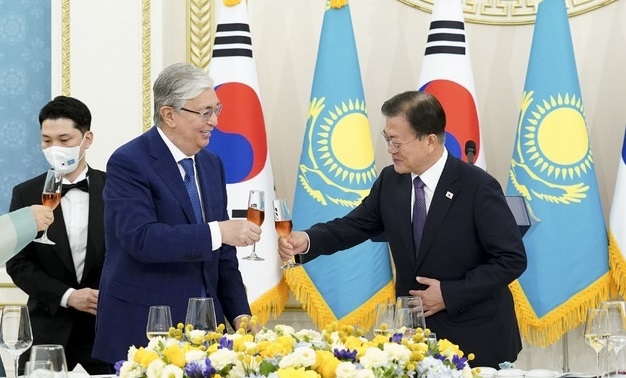 문 대통령은 이날 오후 청와대 영빈관에서 국민 만찬을 개최하고 토카예프 대통령과 국정철학, 코로나19 대응, 문화 교류 등 상호 관심사에 대해 폭넓은 의견을 나눴다.