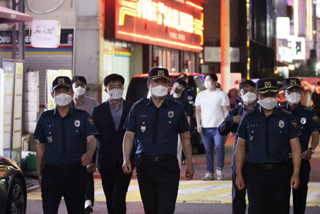 유 청장은 남구 삼산동 일대 유흥가 밀집지역의 방역수칙 준수 실태를 점검하고, 112신고 다발지역 공원에 설치된 비상벨을 확인하고 현장 경찰관들을 격려했다.