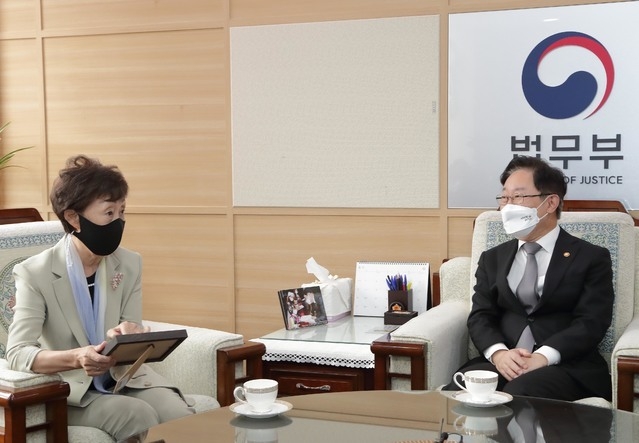 법무부는 19일 "박 장관은 이날 법무부장관 최초로 인권위를 방문해 최 위원장을 만나 아동·수용자·보호외국인 등의 인권보호를 위한 추진사항을 공유하고 상호 협력방안에 대해 논의했다"고 밝혔다.