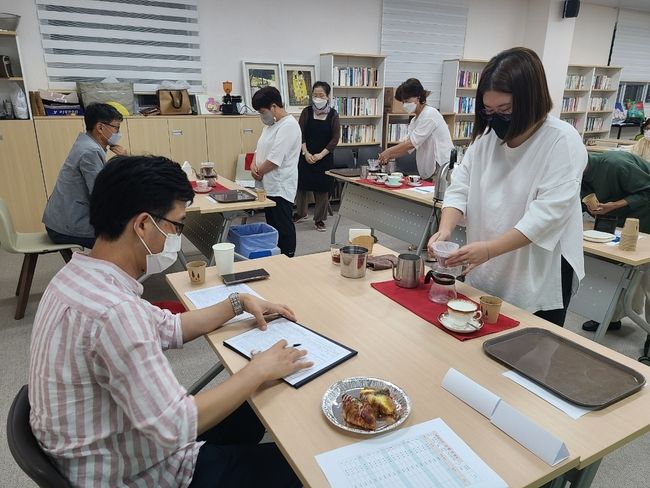 바리스타 자격증반 교육은 지난 7월부터 총 8회, 16시간에 걸쳐 이론 교육과 실습 과정이 진행됐고 마지막 필기 및 실기시험을 거쳐 최종적으로 2급 자격증이 나왔다.