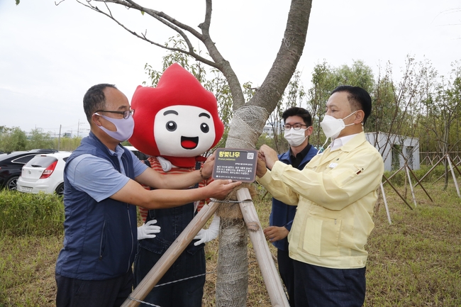 이날 행사에는 도시숲가꾸기 위원회 회원과 주민 등 20여 명이 참석해 200여 그루에 나무이름표를 부착했다. 해당 미세먼지 차단숲은 면적 3.2ha로, 겹벚나무 등 교목(키가 8m 이상 크게 자라는 나무) 32종 9,845그루, 꽃댕강 등 관목(키 2m 이내로 작고 밑동에서 가지를 많이 치는 나무) 15종 75,382그루가 자라고 있다.