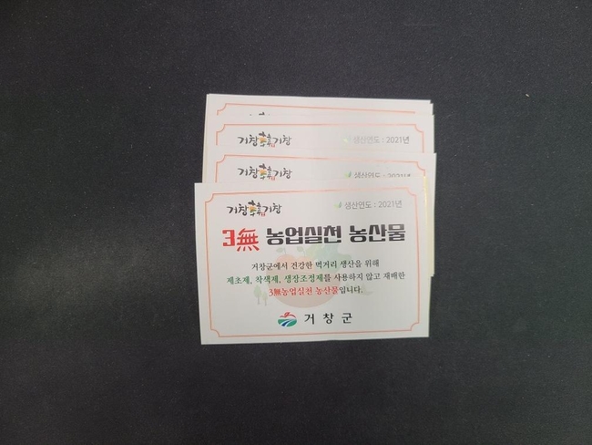 군은 지난 7월 3無농업 실천 농산물 브랜드 개발 용역을 완료해 생산물에 대한 홍보용 스티커를 제작․배부했으며, 생산물은 3無 농산물 인증 스티커를 부착하고 전국으로 판매될 예정이다.