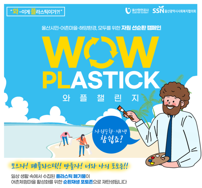 [시사뉴스 정윤철 기자] 울산항만공사(이하 UPA)는 울산사회복지협의회(이하 울산SSN)와 함께 국민참여 자원순환 캠페인 ‘와~플?!(Wow Plastick) 챌린지’ 참여자를 모집한다고 밝혔다.