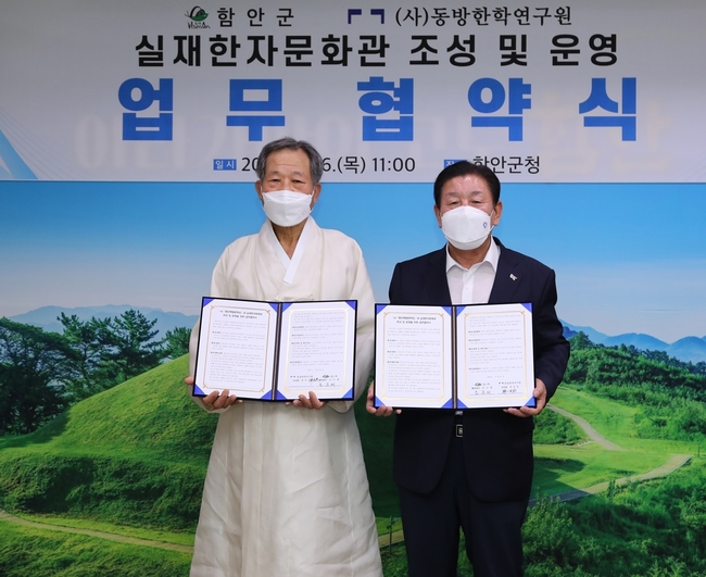 [시사뉴스 정윤철 기자] 함안군은 26일 군청 군수실에서 (사)동방한학연구원과 ‘실재한자문화관’ 조성 및 운영을 위한 업무협약을 체결했다.