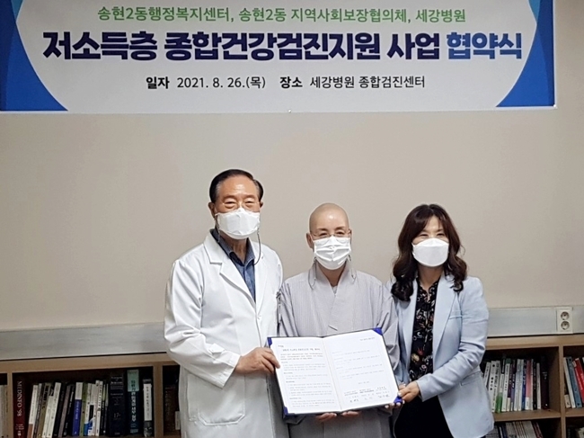 [시사뉴스 강준민 기자] 달서구 송현2동(동장 원혜숙), 지역사회보장협의체(위원장 청명스님) 및 세강병원은 26일 저소득층 종합건강검진 지원을 위한 협약을 체결했다고 밝혔다.