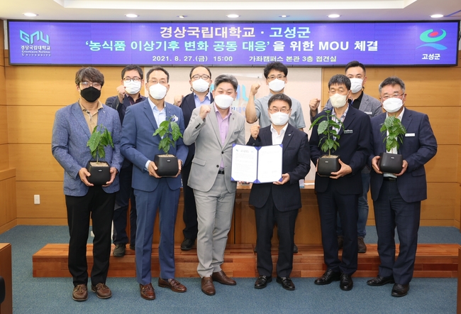 고성군과 경상국립대학교는 업무협약을 통해 농업 분야 저탄소 중립을 위한 정책과제 및 지구온난화에 대응한 대체 작물의 발굴 협력, 미래농업을 위한 농업인 육성 협력, 농식품 기후변화대응센터 유치에 공동으로 협력해 나가기로 했다.