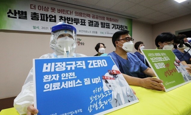 보건의료노조는 18일부터 26일까지 진행한 찬반투표에서 투표율 81.8%, 찬성률 89.8%로 총파업을 가결했다. 조합원 5만6091명 가운데 4만1191명이 파업에 찬성했다.
