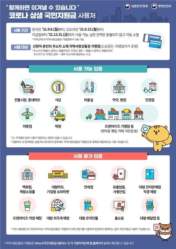 국민지원금은 12월31일까지 약 4개월간 사용해야 한다. 기간 내 사용하지 않은 잔액은 국가와 자치단체로 환수된다.