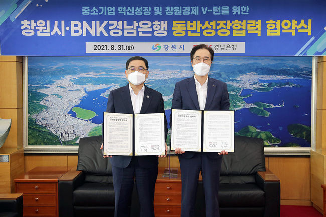 [시사뉴스 정윤철 기자] 창원시(시장 허성무)는 31일 오전 10시 접견실에서 BNK경남은행과 100억원 규모의 동반성장협력 협약 체결했다. 이번 협약을 끝으로 민선7기 공약사항인 동반성장협력자금 1000억원 조성을 달성했다.