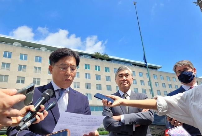 그는 "한국 정부는 긴밀한 한미 공조 하에 북한의 대량살상무기(WMD) 관련 활동에 대해 예의주시하고 있다"며 "오늘 협의에서 북핵 문제가 한반도 안정을 유지하는 가운데 외교와 대화를 통해 시급히 해결해야 할 과제라는 데 인식을 같이 했다"고 했다.