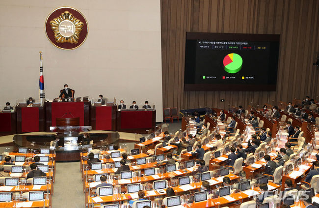 31일 오후 국회 본회의에서는 이 같은 내용을 담은 환경부 소관 탄소중립기본법이 통과됐다.