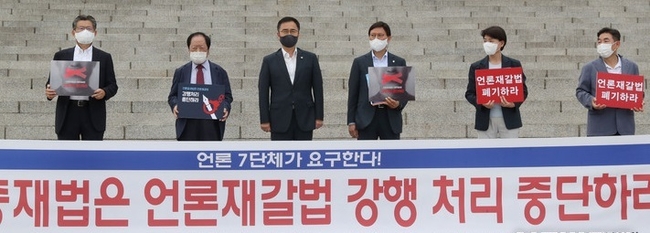 그러면서 "여야 4+4 방식의 협의체는 결국 중대한 언론 문제를 자신들의 이익과 요구를 관철시킬 추종자들로 채울 것이며, 현업 언론인과 언론 전문가 등은 철저하게 배제될 것"이라며 "겨우 3주 남짓한 빠듯한 시간만 허락된 8인 협의체는 이미 누더기가 된 법률 개정안의 미세조정을 두고 힘겨루기만 하다 파행으로 끝날 것이 불을 보듯 뻔한 상황"이라고 짚었다.