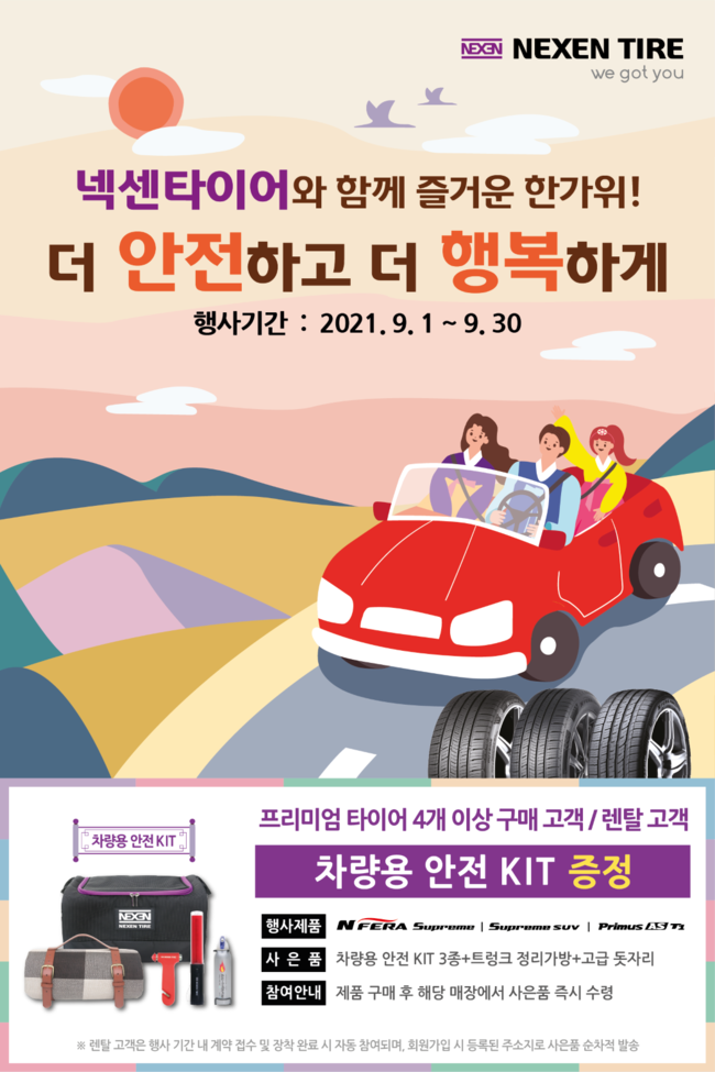 [시사뉴스 정윤철 기자] 넥센타이어(대표이사 강호찬)가 구매 고객을 대상으로 한가위 맞이 사은 이벤트를 실시한다고 1일 밝혔다.