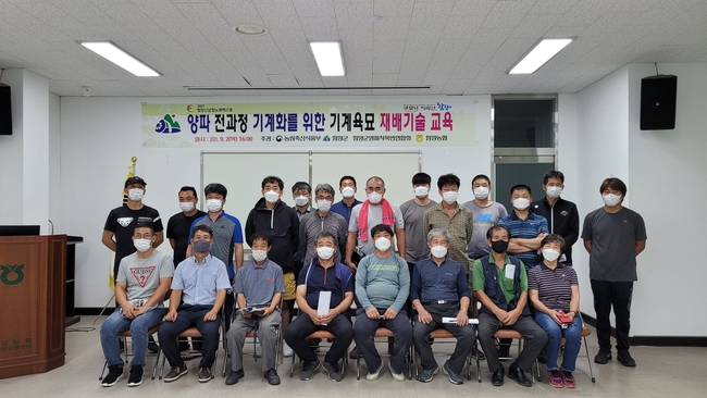 이날 교육은 함양군농업기술센터 원예담당의 강의로 양파 산업현황을 설명하고 고령화와 인건비 상승에 따른 양파 농작업 전과정 기계화의 필요성을 강조하며 기계정식 육묘재배 기술과 육묘시기 중점관리 사항 등의 내용으로 이뤄졌다.