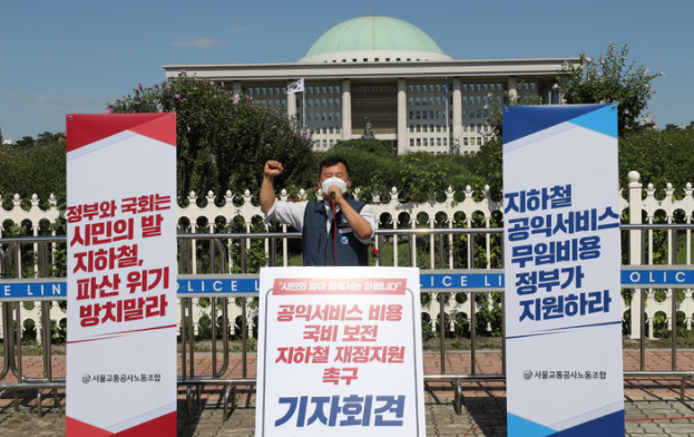 김 위원장은 "재정위기의 원인을 잘 아는 서울시가 정부 책임으로 떠넘기며 운영기관에게 인력감축, 안전관리 외주화 등 비용 절감책을 강요하는 것 역시 파렴치한 태도"라고 비판했다.