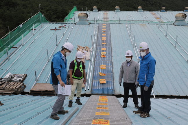 현장에서 채광창 안전덮개 시공 편의성 및 태양광 설비공사와의 간섭여부 등을 중점적으로 살폈다.
