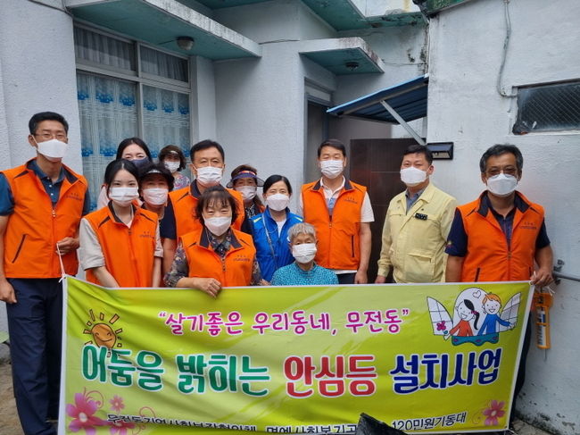 2021년 주민생활현장의 '공공서비스 연계 강화 공모사업'의 일환으로 추진하는 '어둠을 밝히는 안심등 설치 지원사업'은 관내 우범지역 및 독거노인 등 가정내 활동 공간에 태양광을 이용한 동작감지 안심LED 센서등 설치해 취약계층의 안전하고 쾌적한 주거지 환경을 조성하고 주민의 편의 증진 및 보행사고 위험을 방지하기 위한 사업으로 무전동 관내 7세대에 안심등을 설치했다.