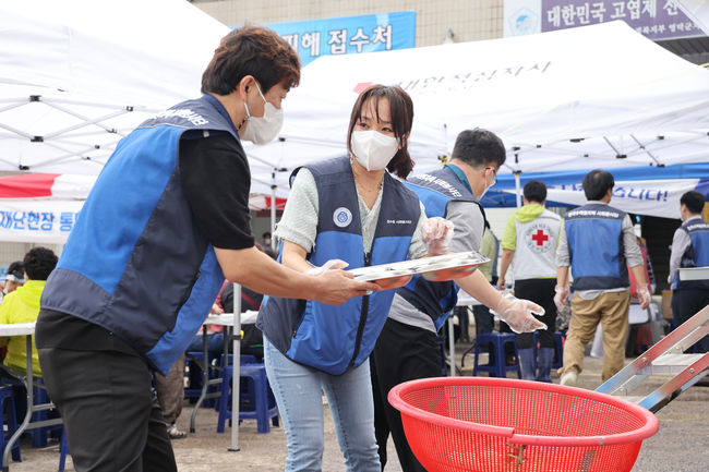 정재훈 한수원 사장은 이날 화재현장을 찾아 성금 등을 전달하고, 피해 복구를 위해 현장에서 땀 흘리고 있는 지원인력과 상인을 위한 식사제공 봉사 활동에 참여했다.