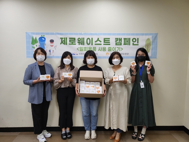 그리고 친환경소재 에코파우치를 만들어 비닐봉투 사용 줄이기를 실천하는 등 제로 웨이스트 캠페인 활동을 적극 펼치고 있다.