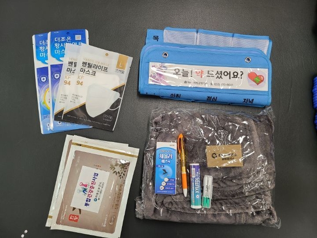 건강안심 꾸러미는 약 달력, 무릎 담요, 한방 파스, 제올라에스, 자일리톨, KF94 마스크, 볼펜, 치간칫솔, 리플렛, 쇼핑백 등 어르신들에게 필요한 물품 10종으로 구성돼 코로나19 장기화로 지친 어르신들이 유용하게 사용할 수 있다.