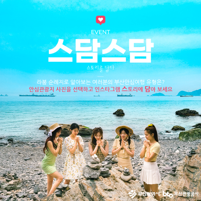 [시사뉴스 정윤철 기자] 부산시와 부산관광공사(이하 공사)는 오는 8일부터 10일까지 공사 공식 인스타그램과 관광포털사이트‘비짓부산(VISIT BUSAN)’을 통해‘부산 안심관광지 스담스담(스토리에 담다) 이벤트’를 실시한다고 밝혔다.